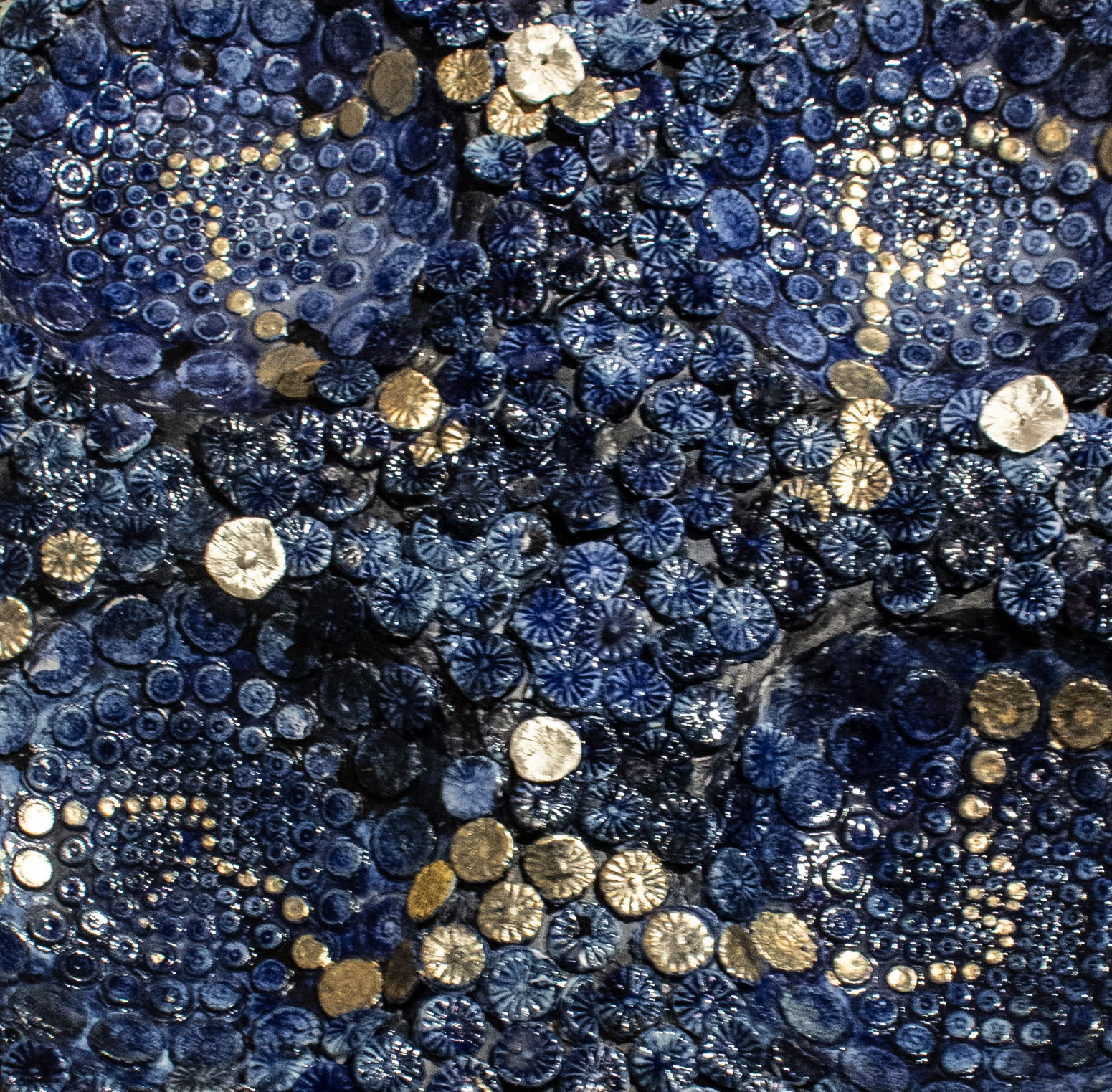これらの装飾の意味を改めて見つめ直すため、それぞれの装飾に描かれた装飾を反復し、その象徴性を意図的に薄れさせ、新たな意味を模索します。さらに、反復されたイメージの上から、金色のペンで自由な線を加えることで、無意味化されたデザインに新しい生命感や表現を吹き込むことを目指します。このアプローチにより、これまでの文様の意味にとらわれない、新たな視点を創造することができます。